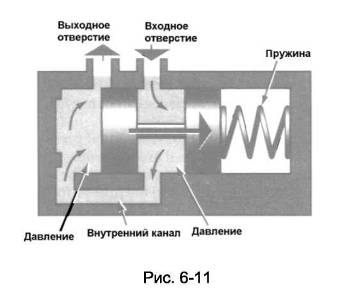 Принцип работы регулятора давления достаточно прост. На один торец клапана действует пружина, а к другому подводится давление (рис.6-11).