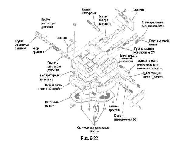 Клапан выбора режима (рис.6-17), является одним из основных управляющих элементов в гидравлической системе АКПП.