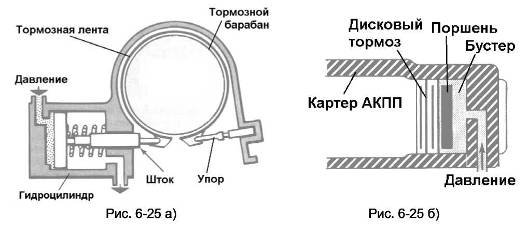 Любой клапан переключения это клапан золотникового типа, к которому подводится давление основной магистрали. Клапан переключения может занимать только два положения либо крайнее правое (рис.6-48а), либо крайнее левое (рис.6-48б). В первом случае правый поясок клапана перекрывает отверстие основной магистрали, и давление не поступает в гидропривод фрикционного элемента управления АКПП. В случае перемещения клапана в крайнее левое положение он открывает отверстие основной магистрали, соединяя ее тем самым с каналом подвода давления в гидропривод.