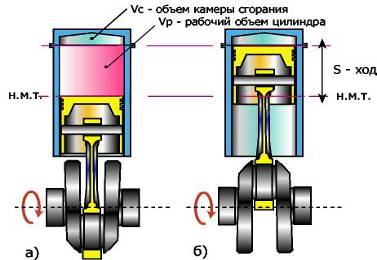 Полным объемом цилиндра является сумма объемов камеры сгорания и рабочего объема: Vп = Vp + Vc.