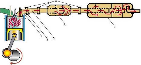 При движении поршня от нижней мертвой точки к верхней мертвой точке, открывается выпускной клапан (впускной все еще закрыт) и отработавшие газы с огромной скоростью выбрасываются из цилиндра двигателя. Вот почему слышен тот сильный грохот, когда по дороге едет автомобиль без глушителя выхлопных газов, но об этом позже. А пока обратим внимание на коленчатый вал двигателя - при такте выпуска он делает еще пол-оборота. И всего, за четыре такта рабочего цикла, он сделал два полных оборота.