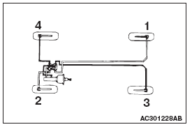 2. В этом случае рекомендуется использовать специальный инструмент - жгут проводов для проверки диагностических кодов (МВ991529) для соединения на "массу" клеммы 1 (клемма диагностического контроля) диагностического разъема.