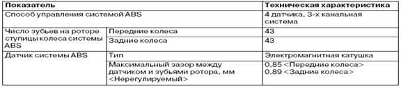 3.Колесные датчики системы ABS передают частоту импульсов напряжения и его величину, генерируемую каждым импульсом, в электронный блок управления системой ABS.