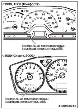 4.2. ПРОВЕРКА КОНТРОЛЬНОЙ ЛАМПЫ ИНДИКАЦИИ НЕИСПРАВНОСТЕЙ ABS