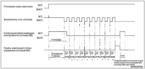 Если работа электронного блока управления системой ABS остановлена включением функции "fail-safe", диагностический код не может быть стерт.