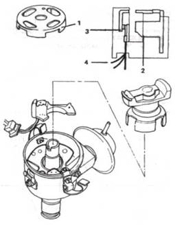 Відцентровий регулятор випередження запалювання, рис. 1.3, призначений для зміни моменту виникнення іскри між електродами свіч запалювання, залежно від швидкості обертання колінчатого вала двигуна.