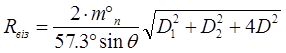 Rвиз = 2 ∙ 0,7/57,3/Sin35 √ 1,75 ² + 2,2 ² + 1,25² = 0,18 мили = 1,8 кбт