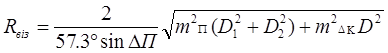 Оценка точности обсервации по 2 пеленгам ориентиров, расстояния до которых D1 и D2 , а между ними D, Применяют формулу: