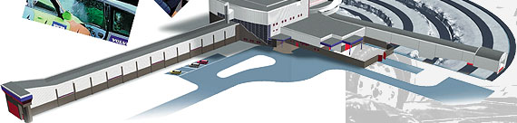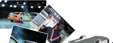 Самая впечатляющая часть комплекса - краш-лаборатория: представьте себе две разгонные дорожки длинной 154 и 108 метров, которые сходятся на освещаемой прожекторами площадке сводчатого зала высотой 14,5 метра, причем одна из дорожек подвижная - она способна поворачиваться. Таким оразом можно моделировать не только фронтальные, но и боковые столкновения. Автомобили приводятся в движение специальными устройствами-ускорителями, которые за считанные секунды разгоняют машины до необходимых скоростей.