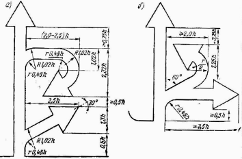 Рис. 17. Размеры стрелки для знаков индивидуального проектирования.