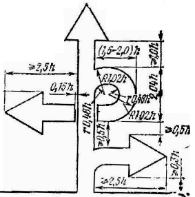 Рис. 13. Принцип построения стрелок для знаков 6.9.2 и 6.10.1.