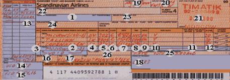 Информация заносится на лицевую сторону полётных купонов и на магнитную полосу, которая находится на обратной стороне полётного купона.