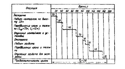 кг - коэффициент использования машины по грузоподъемности, Время цикла зависит от технических параметров перегрузочных машин, типов грузозахватных механизмов и условий эксплуатации. Для козловых и мостовых кранов: