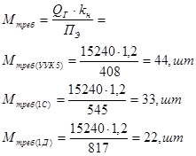 Необходимое количество контейнеров для обеспечения заданного грузооборота составляет: