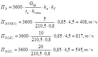 kсовм - коэффициент совмещении операций; для козловых, мостовых и кранов-штабелёров – 0,8, для передвижных стреловых и железнодорожных кранов - 0,7, кв =0,8-0,85 - коэффициент использования машины по времени;