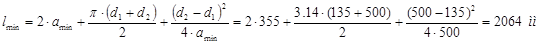 По стандартному ряду длин выбираем длину ремня lр , исходя из условия lp >lmin . Таким образом lр =2500мм. Так как минимальное расчетное и стандартноезначение длины ремня различаются, необходимо уточнить межцентровое расстояние: