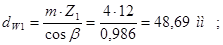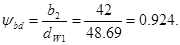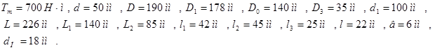 В зависимости от максимального крутящего момента выбираем сечение ремня «Б». Этому сечению соответствует минимальный диаметр ведущего шкива dmin = 125 мм, т.е. тот диаметр, при котором напряжения изгиба обеспечивают долговечность ремня на 1000 часов работы. Так как нет никаких дополнительных требований к диаметру шкива, с целью уменьшения ремней и напряжений в них из ряда R40 выбираем расчетный диаметр ведущего шкива d1 на несколько размеров больше.