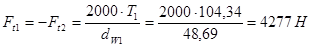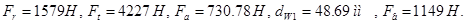 3. сила от зубчатой передачи Ft ,Fr ,Fa , (H)