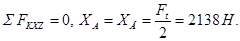 Определим опорные реакции в горизонтальной плоскости XZ: