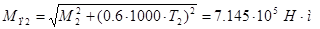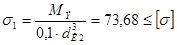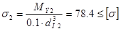 Опасное сечение ведомого вала располагается в точке (2), диаметр вала в заданном сечении