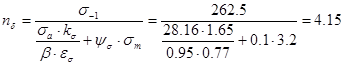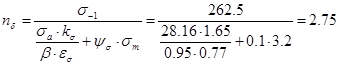 Определим коэффициент запаса прочности по нормальным напряжениям