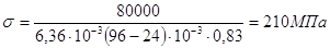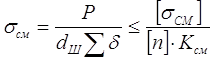 Допустимо [ sсм ] = 1,5 [sp] = 1,5 *1700 = 2550 кгс/см2.