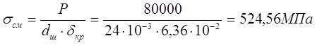 sсм = Pmax/d / bo*d=313088 / 104 * 2,0 = 1505,3 кгс/см2