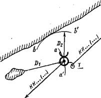 Когда в районе пеленгуемого объекта берег не имеет характерных ориентиров, измеряют кратчайшее расстояние D до береговой черты. Исправив и проложив на карте линию визуального пеленга