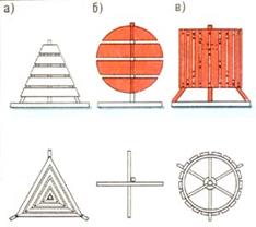 Бакены (рис. 6) - основные плавучие знаки на малых реках. В верховьях рек применяют бакены круглого силуэта, на реках с повышенной интенсивностью движения - прямоугольного.