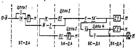 Рис.18 Схема увязки трехзначной автоблокировки переменного тока с двусторонним движением поездов со станционными устройствами