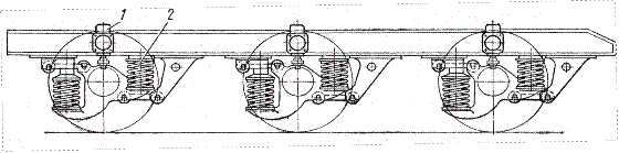 Секция тепловоза может иметь тележки с пружинными комплектами рессорного подвешивания только одной группы или только I и II, II и III. Номер группы жесткости пружинных комплектов указывается в паспорте тепловоза для каждой секции.