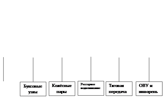 Колесная пара - наиболее важный узел ходовой части железнодорожного подвижного состава, обеспечивающий его взаимодействие с рельсовым путём. Колёса передают на рельсы статические и динамические нагрузки. Колёса локомотивов во взаимодействии с рельсами реализуют продольные, горизонтальные силы. Кроме того, направляя движение подвижного состава в рельсовой колее, колёса передают горизонтальные силы. С этим связана важная особенность ходовых частей железнодорожного подвижного состава, отличающая его от других видов наземного транспорта: колеса жестко связаны с осью в один вращающийся узел, называемый колесной парой. Локомотивные колесные пары в отличие от вагонных имеют устройства для тягового привода. Их оси по существу являются валами, передающими на колеса вращающий момент. На ось момент передаётся обычно через ступенчатую передачу. При цилиндрических зубчатых колесах колесная пара может иметь симметричный двухсторонний привод. Такую конструкцию имеют колесные пары ряда электровозов. На тепловозах из-за трудности размещения тяговых электродвигателей соответствующей мощностью применяются несимметричный односторонний привод. На тепловозах с гидропередачей и карданным приводом ведущих колесных пар зубчатое колесо укреплено ближе к середине оси. Колесные пары направляют движение локомотива по рельсовой колее, передают его вес на рельсы и, опираясь на них, участвуют в реализации силы тяги, создаваемой двигателем тепловозов, а так же тормозной силы. Колесные пары тепловозов вращаются в подшипниках букс, который связаны с рамой тележки.