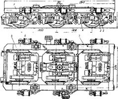 Для уменьшения динамического воздействия тепловоза на путь и смягчения обратного действия - ударов на неровностях пути на оборудование тепловоза и локомотивную бригаду- рама опирается на буксы через упругие звенья, образующие так называемое рессорное подвешивание. Для облегчения прохождения тепловозами кривых участков пути их колесные пары объединяются в две тележки, которые могут поворачиваться относительно оси локомотива на некоторый угол. Этот угол невелик и не превышает для магистральных тепловозов 3-3,5 градуса (при минимальном радиусе кривых 125 м) и для маневровых и промышленных тепловозов-4-7 градусов (при минимальном радиусе от 80 до 40 м). База тележки в 2-3 раза меньше базы тепловоза (за которую в данном случае принимается расстояние между осями поворота тележек), поэтому в трехосных тележках необходимый разбег средней оси не превышает 14-15 мм. Современные магистральные тепловозы имеют тележечные экипажи.