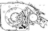 1- фитильная набивка или польстер, 2- верхняя смазочная камера, 3- нижняя масляная камера, 4-бандаж; 5-колесный центр; б, 12, 16-лабиринтные кольца, 7- шестеренный масляный насос, 8-зубчатый венец; 9- ось; 10- вкладыши моторно-осевого подшипника; 1 1- тяговый электродвигатель; 13-зубчатый венец; 14-эластичный элемент; 15-боковой фланец; 17-ролик; 18-ступица; 19-упорный элемент.