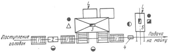 Рис. 8. Схема техпроцесса участка разборки и очистки головки цилиндров двигателей: