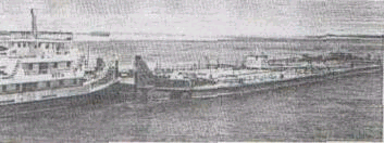 лихтера, и буксир-толкач ошвартовывается, При такой схеме буксир не подходит ближе 15 и к кромке грузовой палубы.