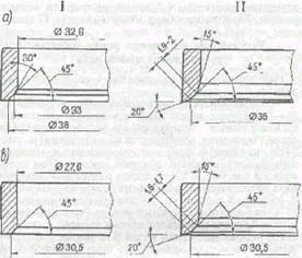 Рис. 3.5. Седла клапанов: а - седло впускного клапана; b -седло выпускного клапана; I - новое седло; II - седло после ремонта.