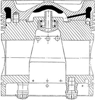 3) соединить тронк с головкой, совмещая буквы “ВП” на верхнем торце головки с буквами “ВП” на нижнем торце тронка. Установить на шпильки втулки, смазать резьбу гаек и шпилек маслом применяемом для дизеля и навернуть гайки;