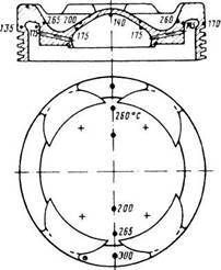 Рисунок 2.2 - Температуры в различных точках головки поршня дизеля 1А-5Д49