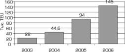 Рис. 5. Динамика контейнерного грузопотока через переход Достык – Алашанькоу [4] .