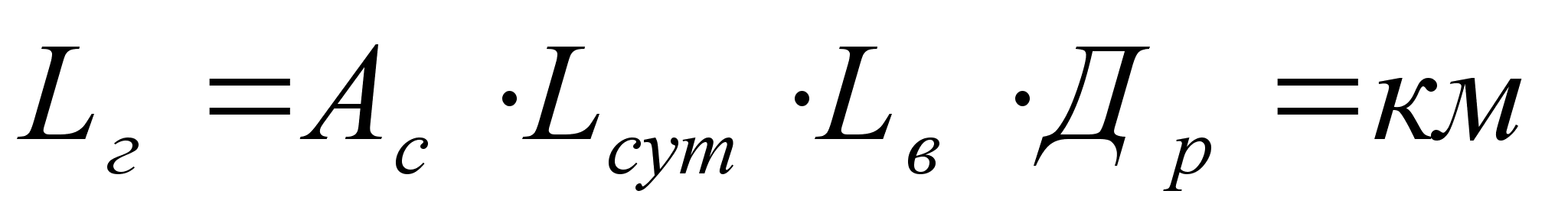 Общий пробег всех автомобилей, тыс. км. Lсут.