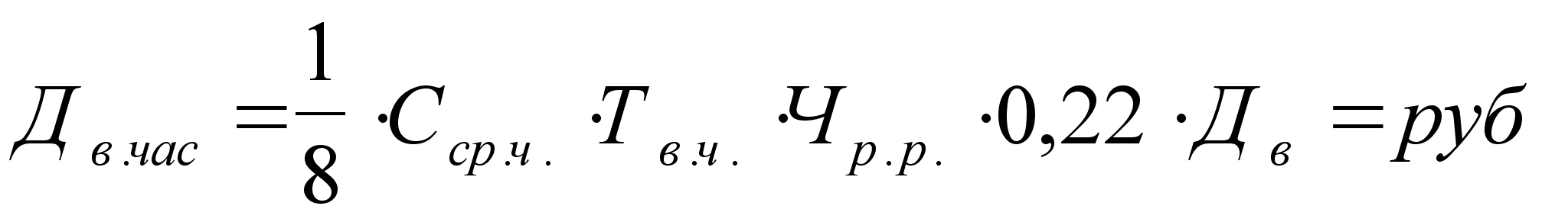 ФРВ=(Дк-Дп-Дв-Дот-Дд.от-Дбол-Дгос.об-Дл.над)*8ч-8ч=час (1) [3, стр.73]