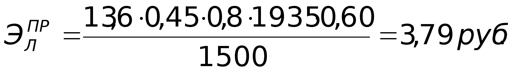 Э = [(83,52 + 0,15 339,125) – (67,28+0,15 288,47)] 1500 = 35757,31 руб.