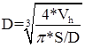 dгор = √4 * Fгор/ π = √4 * 12,65/3,14 = 4 см.