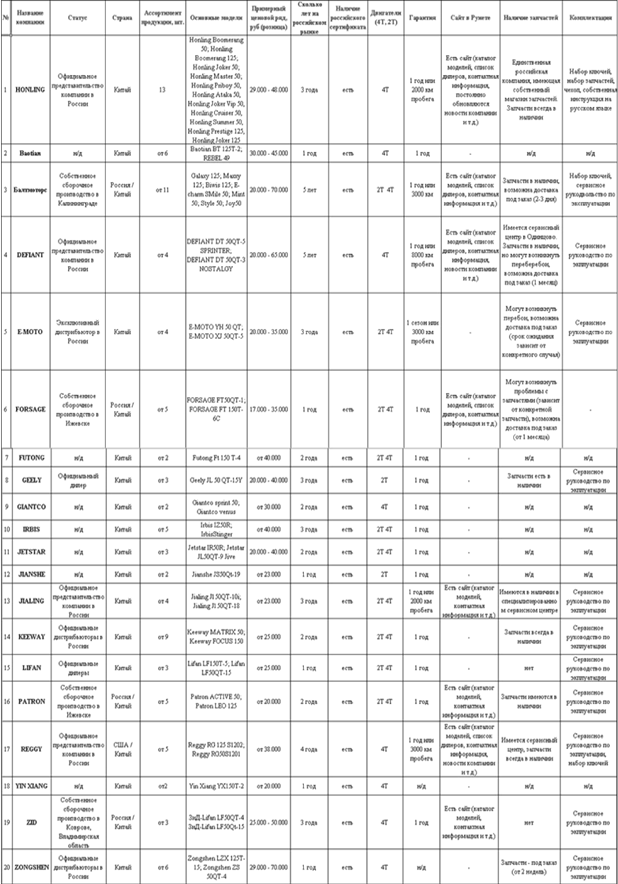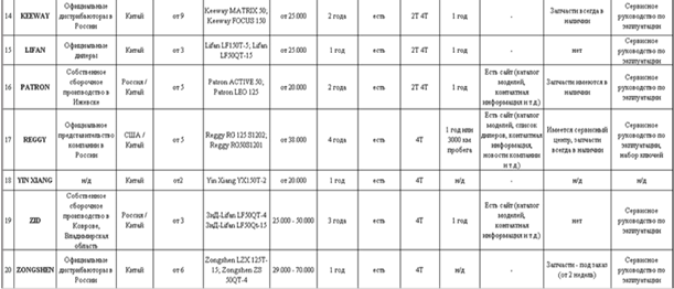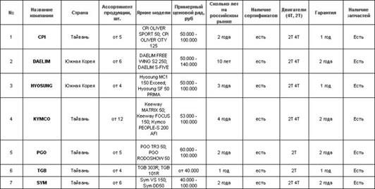 3) Анализ ассортимента и работы скутерных магазинов, рынков и пунктов продаж скутеров .