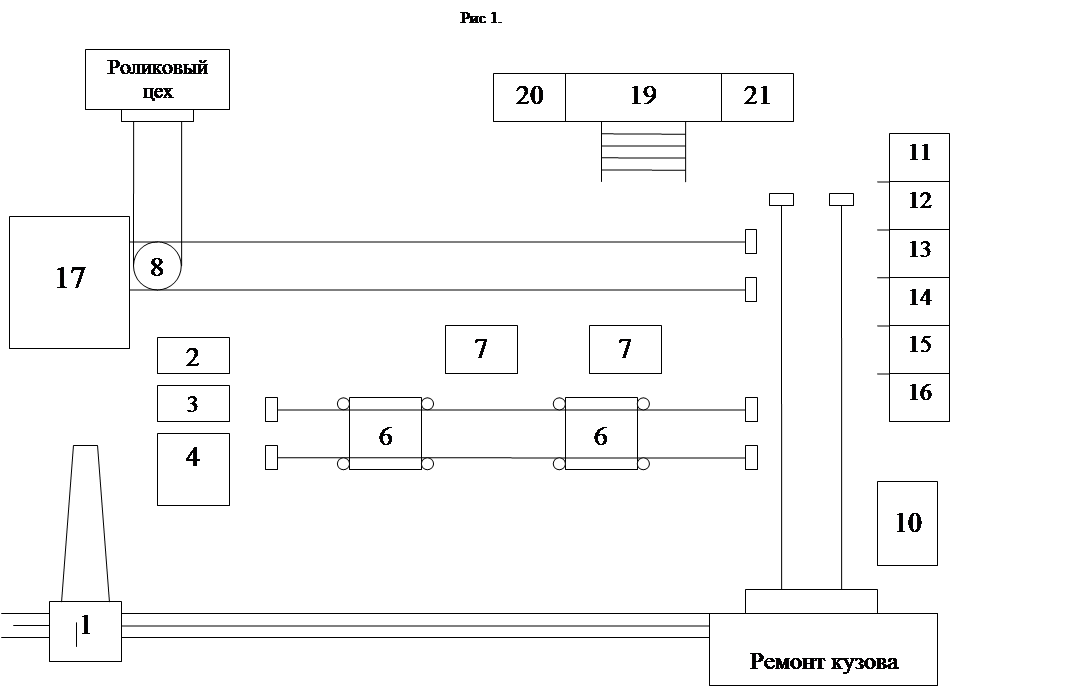 Результаты контроля технического состояния тележки учитываются в пронумерованном журнале общей формы. Оборудование и технологическая оснастка участка по ремонту тележек. Схема расположения оборудования участка приведена на рис. 1.