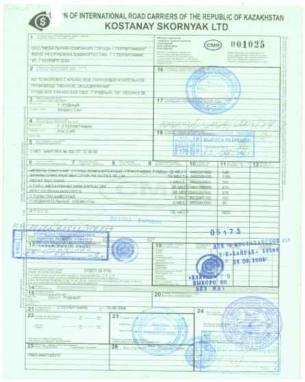 Кроме того, Союзом была разработана проформа международного коносамента (CMR), которая внедрена в 23 европейских странах (Приложение В).