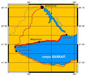 Восточнее Култука характер береговой полосы резко меняется. Она мало изрезана, отроги горного хребта местами удаляются на значительное расстояние (до 20 км), встречаются низменные сырые места и болота, осыпи и обвалы.
