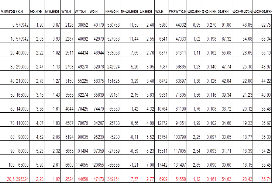3 Розрахунок і побудова характеристик сил, діючих на поїзд
