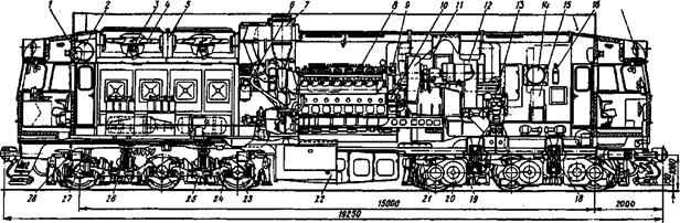 , был оборудован дизелем мощностью 736 кВт, двумя генераторами и трубчатыми холодильниками. При параллельном соединении тяговых электродвигателей, электрическая схема позволила осуществлять последовательное и параллельное соединение генераторов.